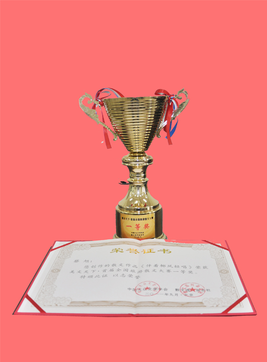 在中国大众文学学会、《散文选刊》杂志社主办的全国旅游散文大赛中,海南科技职业学院教授蔡旭的散文诗《伴着椰风轻唱》(8章)获一等奖。