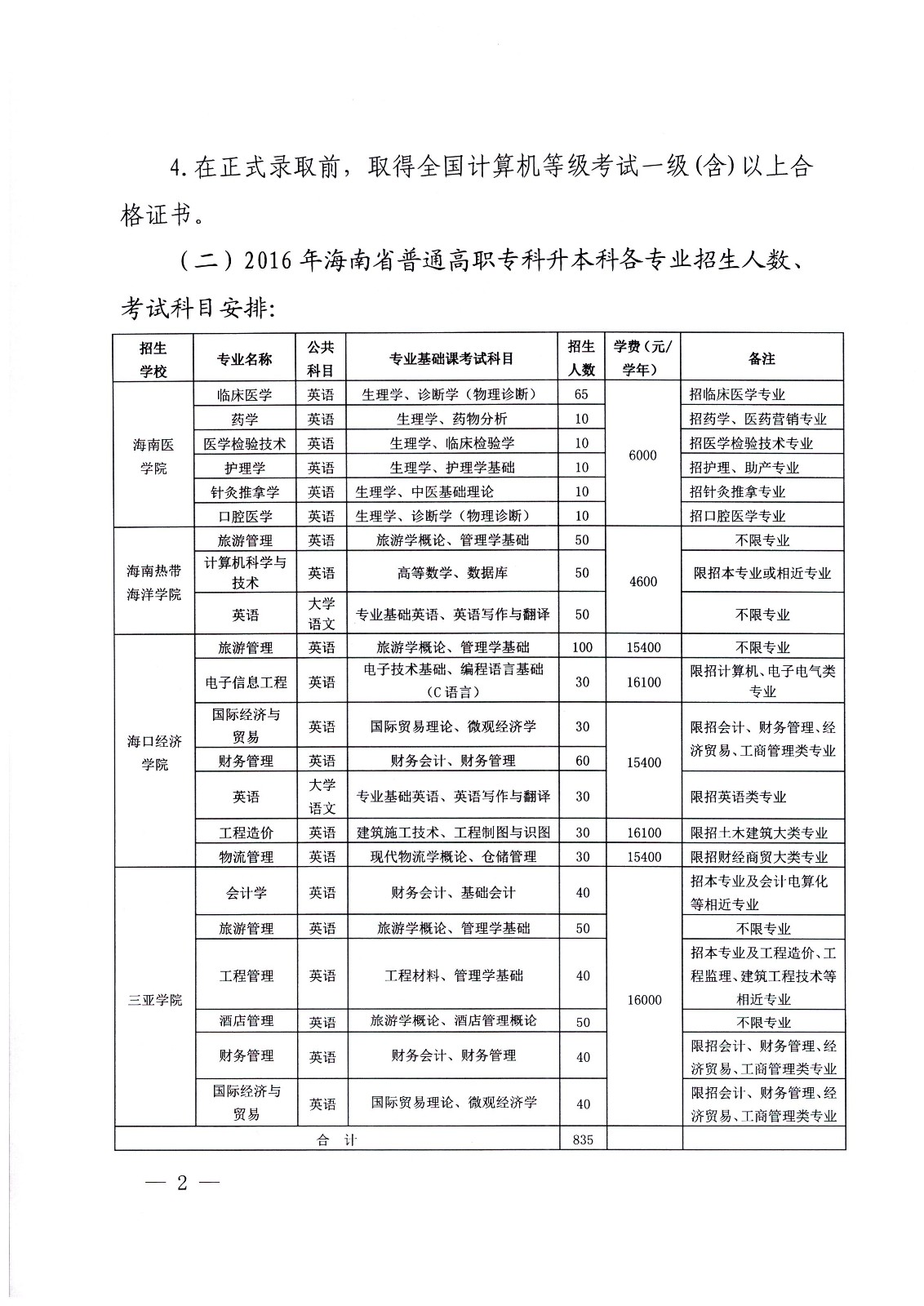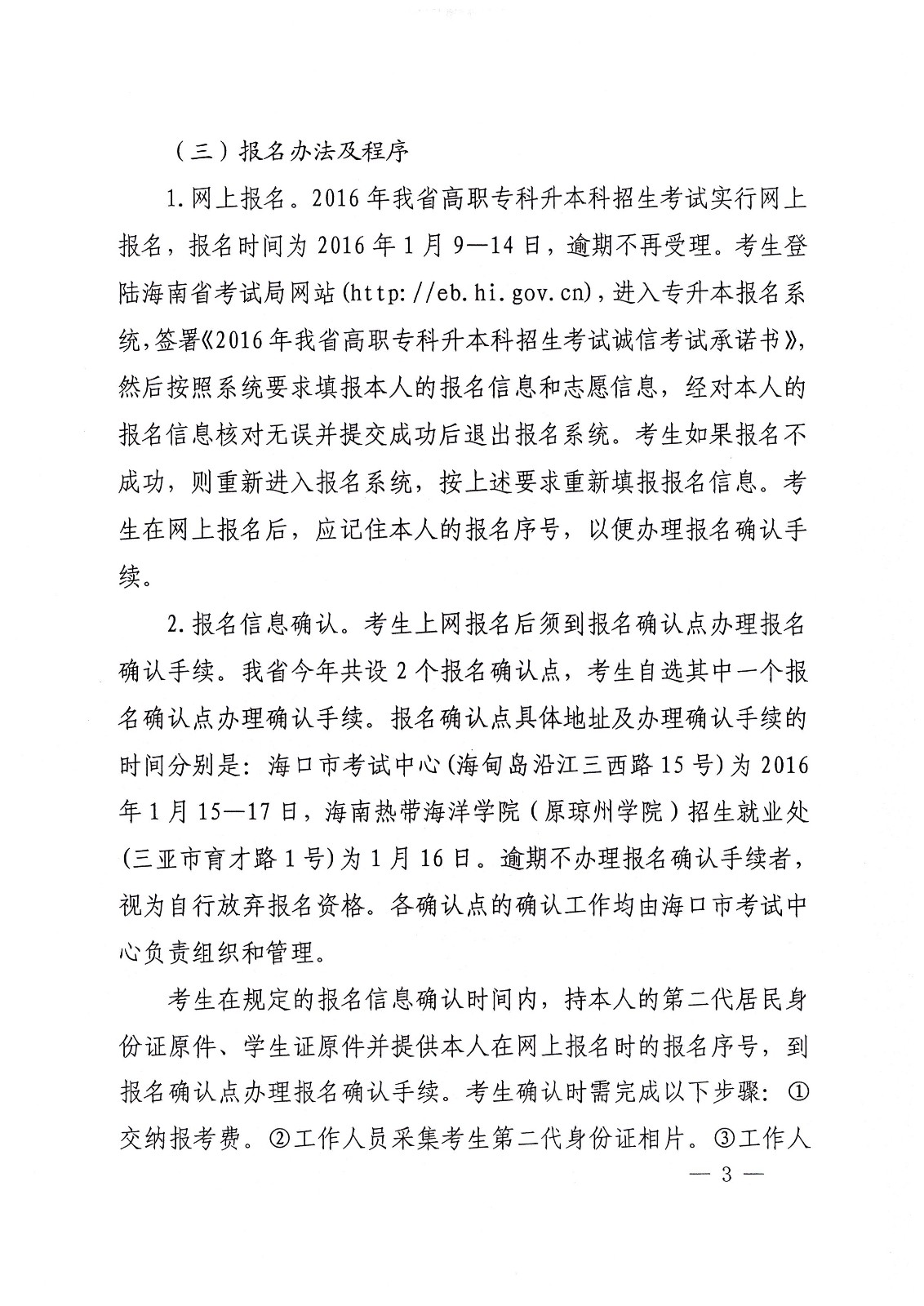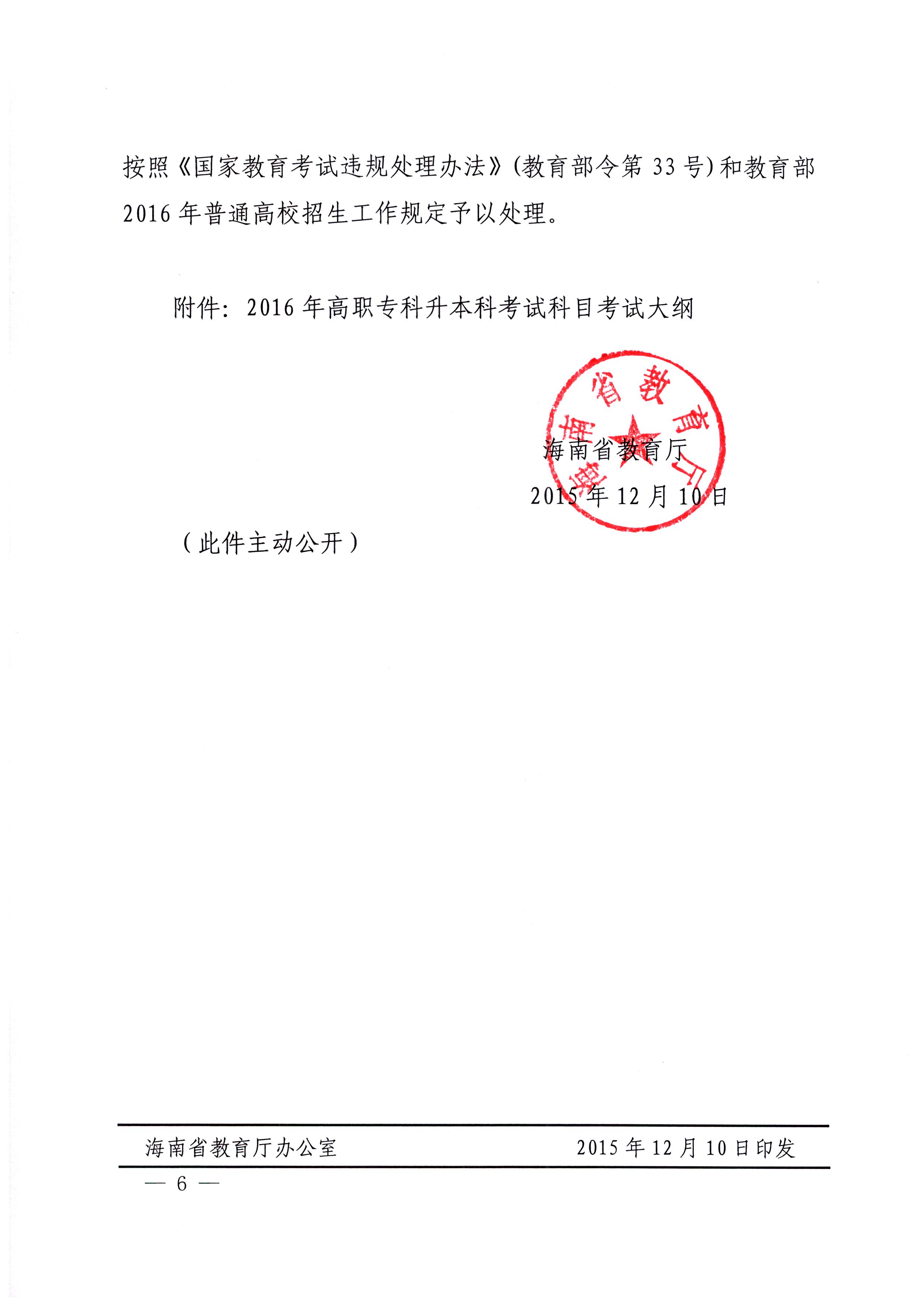 海南省教育厅关于做好2016年海南省高职专科升本科招生工作的通知