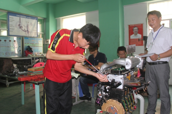 图3:汽车检测与维修专业学生技能测试现场操作环节考试剪影
