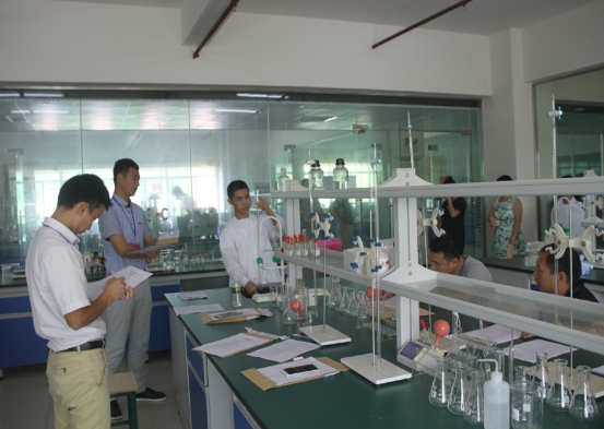 图2:药品生产技术专业学生技能测试现场操作环节考试剪影