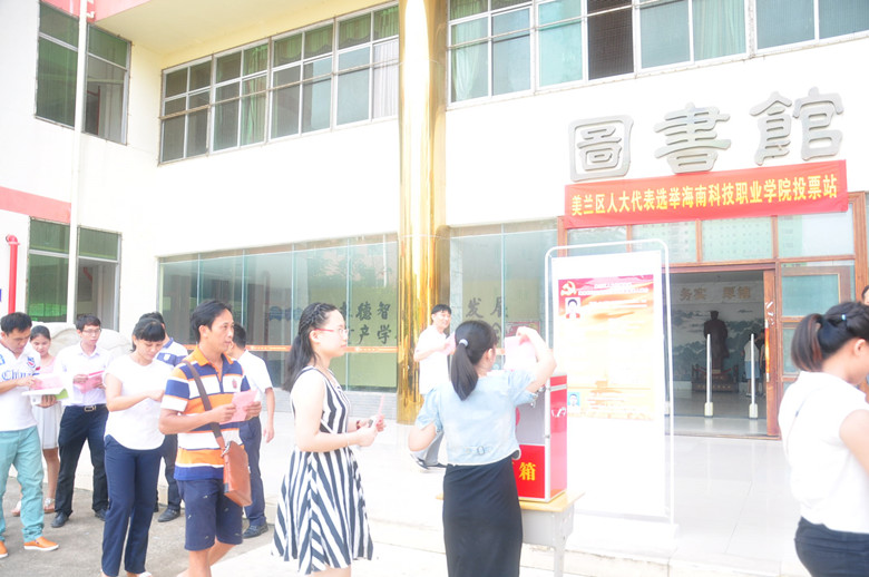 按照海口市美兰区选举委员会关于美兰区第七届人大换届选举工作的部署安排,我校于9月8日上午9时,在图书馆前举行了美兰区灵山镇第十七选区(海南科技职业学院选区)人大代表选举投票仪式。同时,学校还在8个二级学院设有8个投票站。