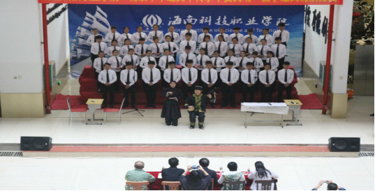 在比赛过程中,同学们有的换上古典服饰,寄情于景,引人入胜;有的请来了“助阵嘉宾”为此助威,通过武术、舞蹈、情景剧等古典元素与现代艺术相结合的新颖形式,将诗词中情景形象的表达出来,让人耳目一新。国学经典名篇与影音效果的完美搭配,让现场的师生享受了一次中华传统文化的视听盛宴。九组决赛选手经过激烈的角逐,最终机电工程学院代表队荣获一等奖;建筑工程学院代表和健康科学学院代表队荣获二等奖;艺术学院代表队、航海学院代表队和国际旅游与经济管理学院代表队荣获三等奖。