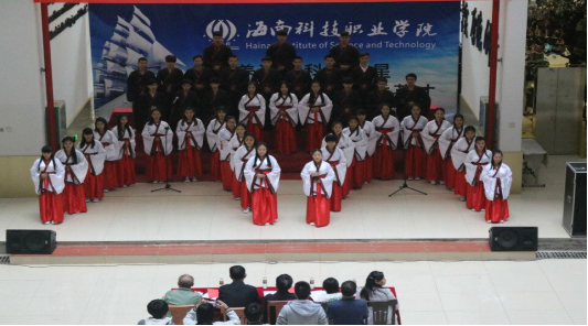 12月16日下午,由海南科技职业学院校团委主办的“诵读中华经典,传承华夏文明”国学经典诵读比赛决赛在航海大楼隆重举行。学校阮忠副校长、彭德福副校长、财务处胡敏处长、教务处谢林副处长、校办王雪副主任、校团委张华山书记以及各二级学院学工就业副院长出席了本次活动。