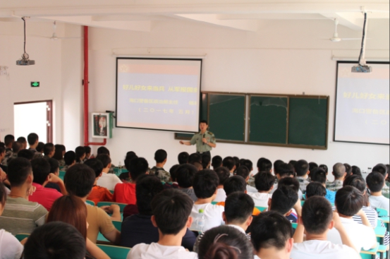 2017年5月24日下午3点,海南省国防教育专家、海口警备区政治部主任杨礼文上校莅临我校,在我校公共教学楼301教室进行了以“好儿好女来当兵 从军报国多豪情”为主题的征兵宣传教育讲座。在我校武装部的精心组织下,学校教官队、班级干部近百余人参加了讲座。
