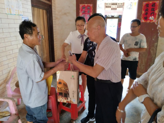 9月29日上午,在国庆和中秋双节到来之际,我校分管扶贫工作的刘朋军同志带领各支部的书记、党员代表、教师代表共16人一同前往定安县,为我校定点帮扶的龙湖镇里变村的贫困户送去节日的问候,同时了解他们的脱贫进展情况。