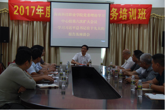 焦解歌书记在发言中指出,习总书记在十九大上的报告共赢得了39次热烈的掌声,可谓务实奋进、内涵丰富、意义深远、振奋人心。这份报告全面梳理了十八大以来我们党领导人民在改革发展稳定、内政外交国防、治党治国治军各方面取得的巨大成就,总结了过去五年的工作和历史性变革,深刻揭示了我国社会主要矛盾的变化,庄严宣示了新时期中国共产党的历史使命,系统阐述了坚持和发展中国特色社会主义的基本方略,提出了我们党治国理政的新理念新思想新战略。焦书记提纲掣领地概括了习总书记报告的主要内容,他号召学校要组织深入学习宣传十九大精神,深刻领会新时期中国特色社会主义思想的精神实质和丰富内涵,特别是在海科院向本科应用型大学迈进的过程中,在学校“升本”的攻坚期,必须始终坚持立德树人的根本任务,通过思想铸魂、改革创新、人才固本、凝聚海科精神,用实际行动贯彻落实党的十九大精神,推动学校“升本”工作,为实现党的两个百年计划培养高素质人才。