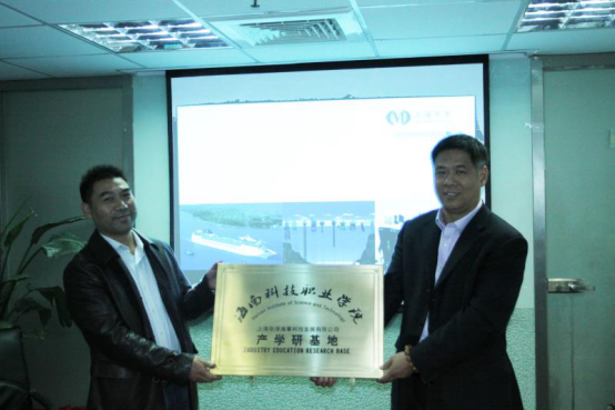 合作企业授牌 左一:黎冬楼院长 右一:上海华洋总经理包仁松
