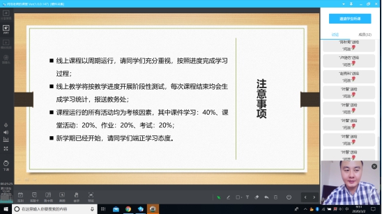 各教学单位指导老师们克服特殊时期的各种困难,提前做好平台注册、备课、上传教学资料、建群、试课等准备工作,做好网络故障或平台卡顿等特殊情况预案,做好教学平台间的切换准备工作。准备在线授课过程较为复杂,涉及到备课(PPT,习题,作业等)、录课等,线下准备时间较长,线上时间并无缩短。面对这些困难,老师们认真参加培训,努力地解决问题,迅速适应线下到线上教学的转变。例如机电工程学院教学副院长赵峰提前考虑了老教师们在开展线上教学可能遇到的困难,结合自己在智慧树网自建翻转课的经验,亲力亲为,录制了一个线上建课的视频,用通俗易懂的 语言,从如何登录网站,如何进行教学视频的制作、利用PPT和音频进行视频的合成,如何上传教学资源、发布学习任务,如何进行学生管理,如何开启直播,进行签到、投票、随机点名等互动技巧,都细致入微地一一进行了培训,为线上教学呈现最佳效果提供了有力的保障。